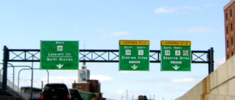 Alternatively, if you're coming from the south, get on I-93, headed for Boston. Our little story starts as you head underground at the big dig. If you reset your tripodometer when you arrive at the tunnel entrance, the mileages shown on this page should make it really really easy.