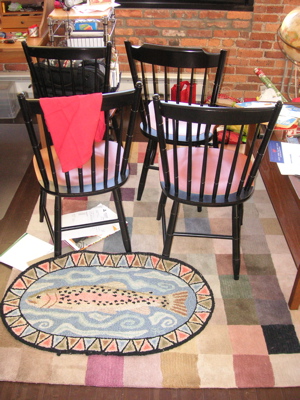 The chairs were all pushed to the corner of the room Sarah with her water and Rush with his Sprite |