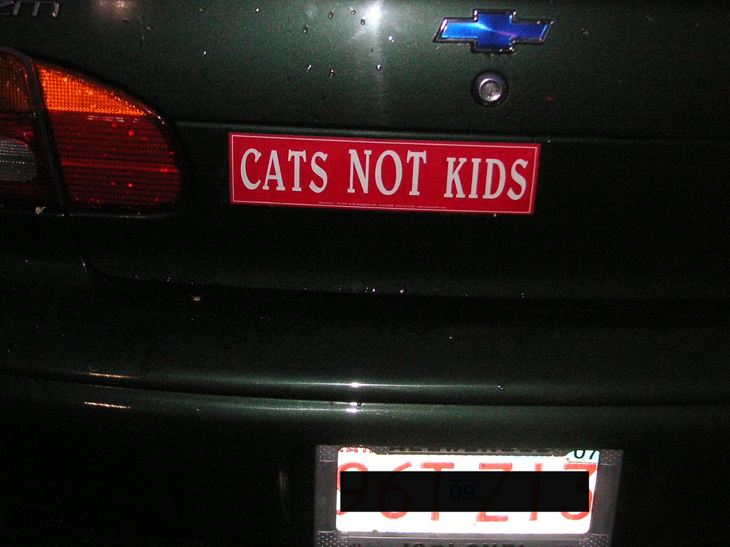 I’m going to make my own bumpersticker that says KIDS NOT CATS!